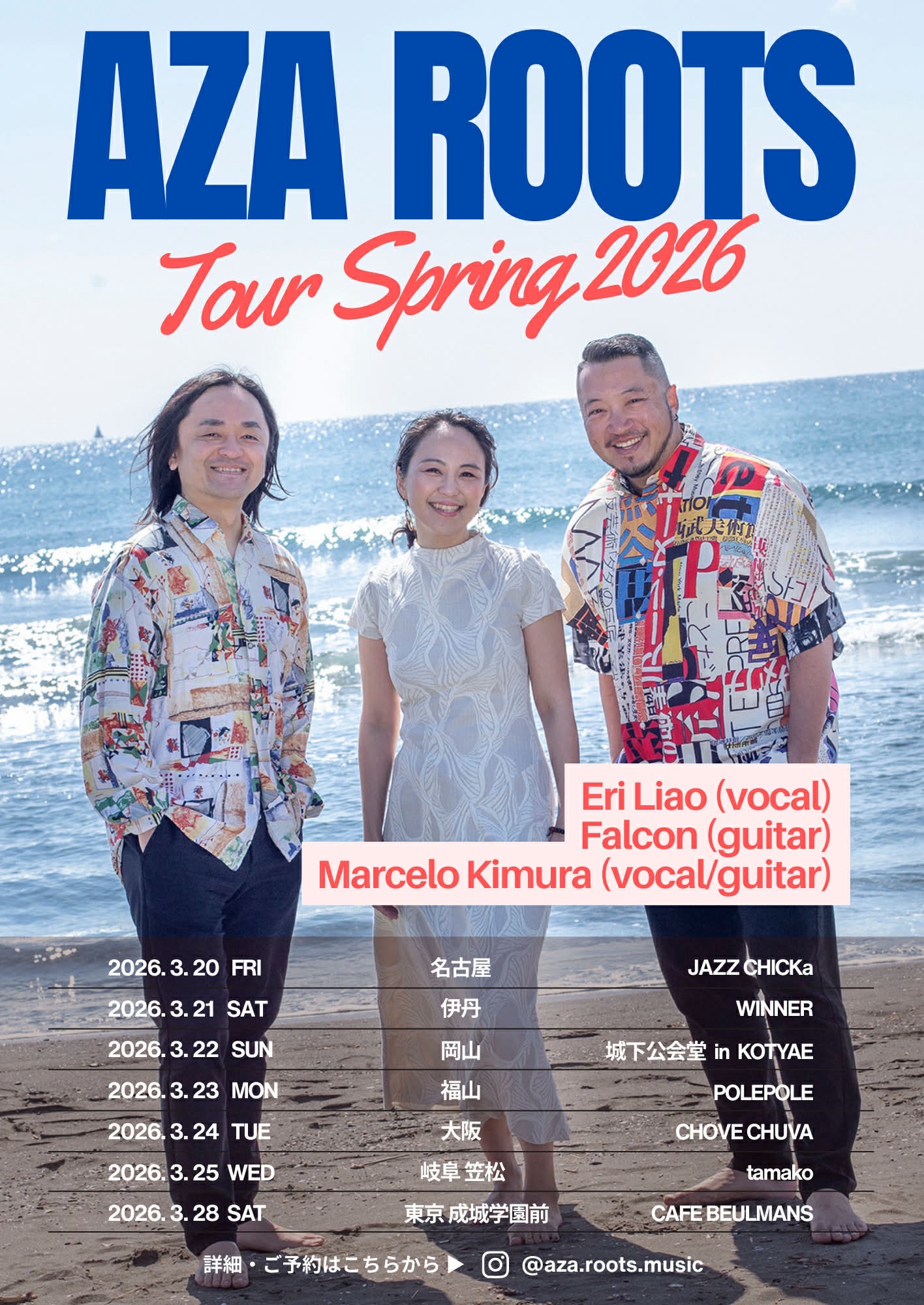 【予約受付中】AZA ROOTS :エリ・リャオ(vo)/ファルコン(gt)/マルセロ木村(vo,gt)