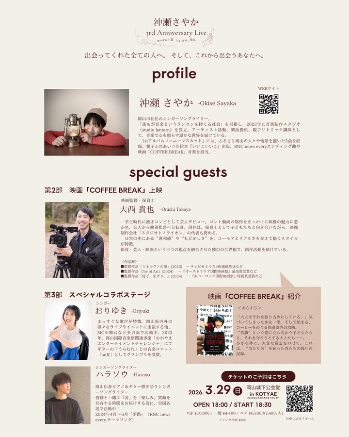※3月14日(土)12:00~、各種プレイガイドでチケットの一般発売開始します。