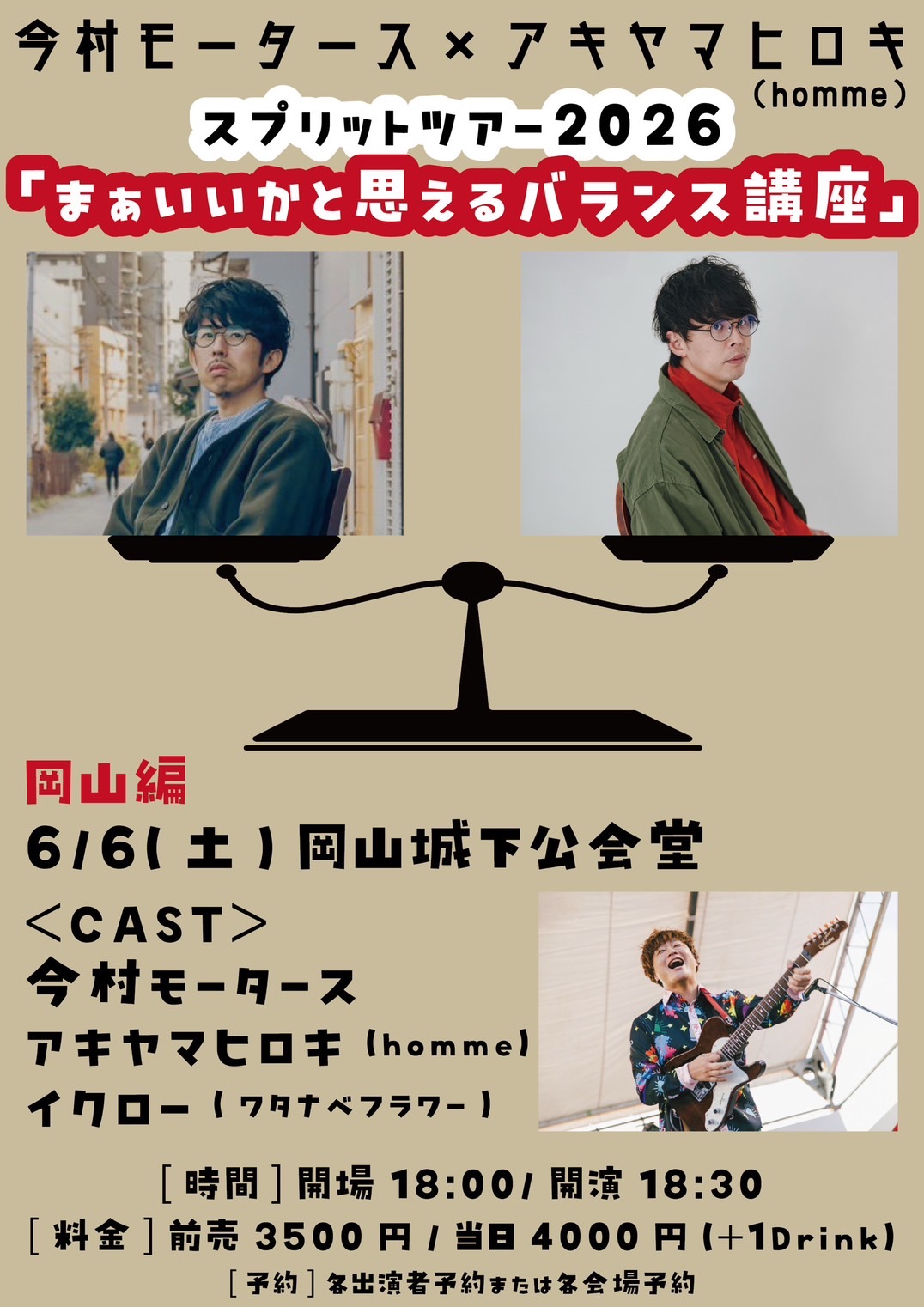 【各出演者でも予約受付ています】アキヤマヒロキ(homme)/高橋レオ(ドン・タカハシ)/坂東圭一郎